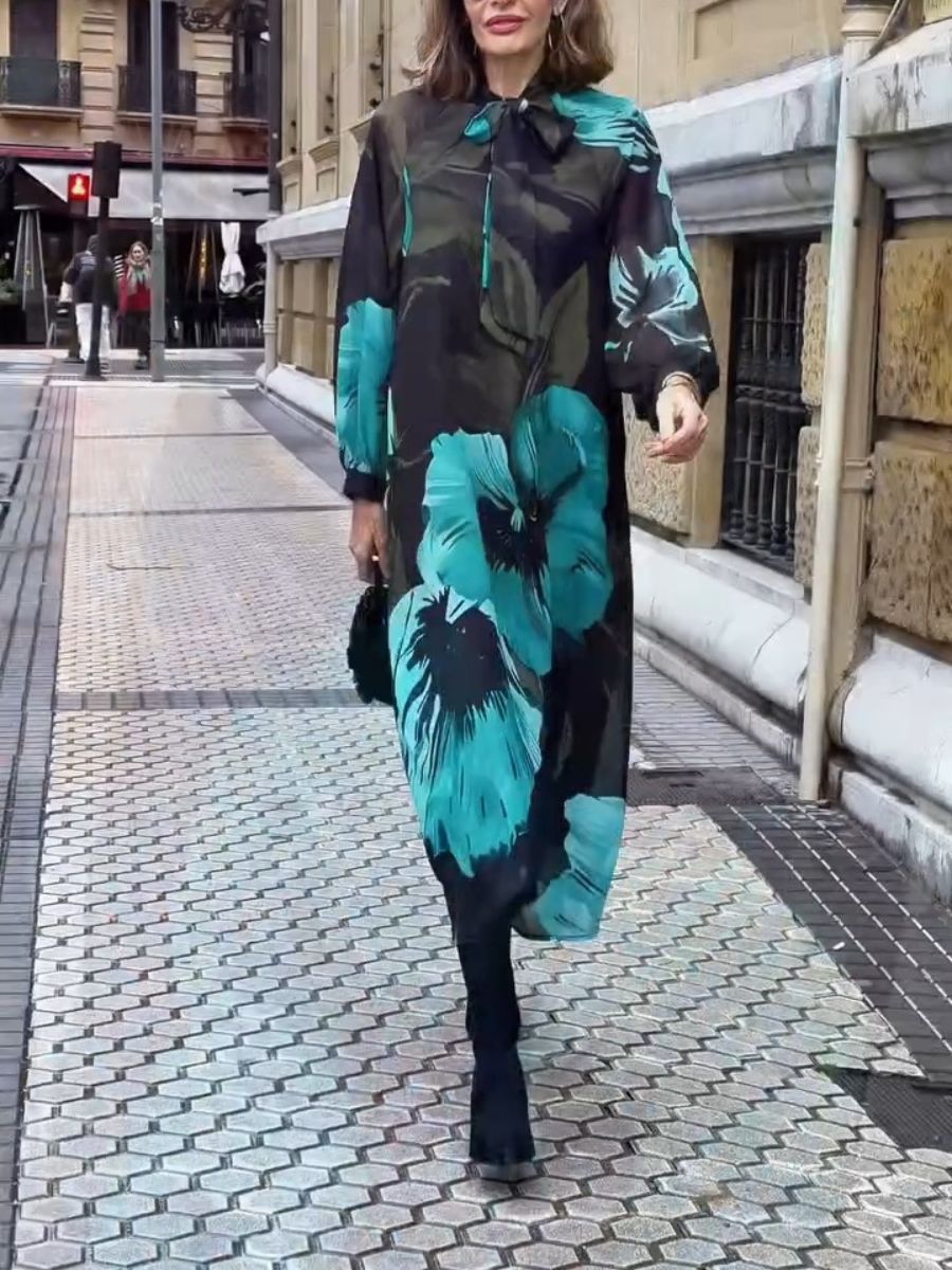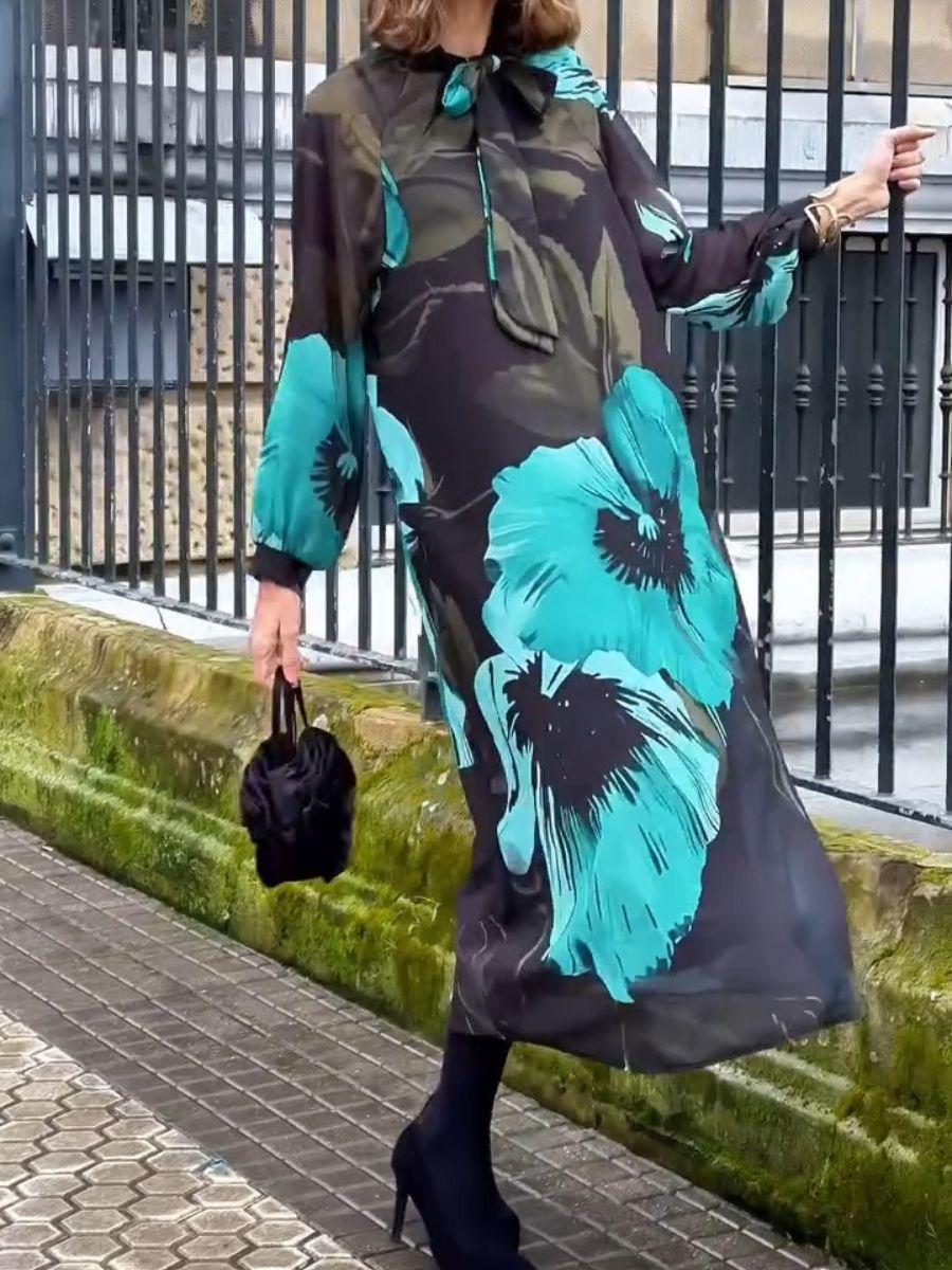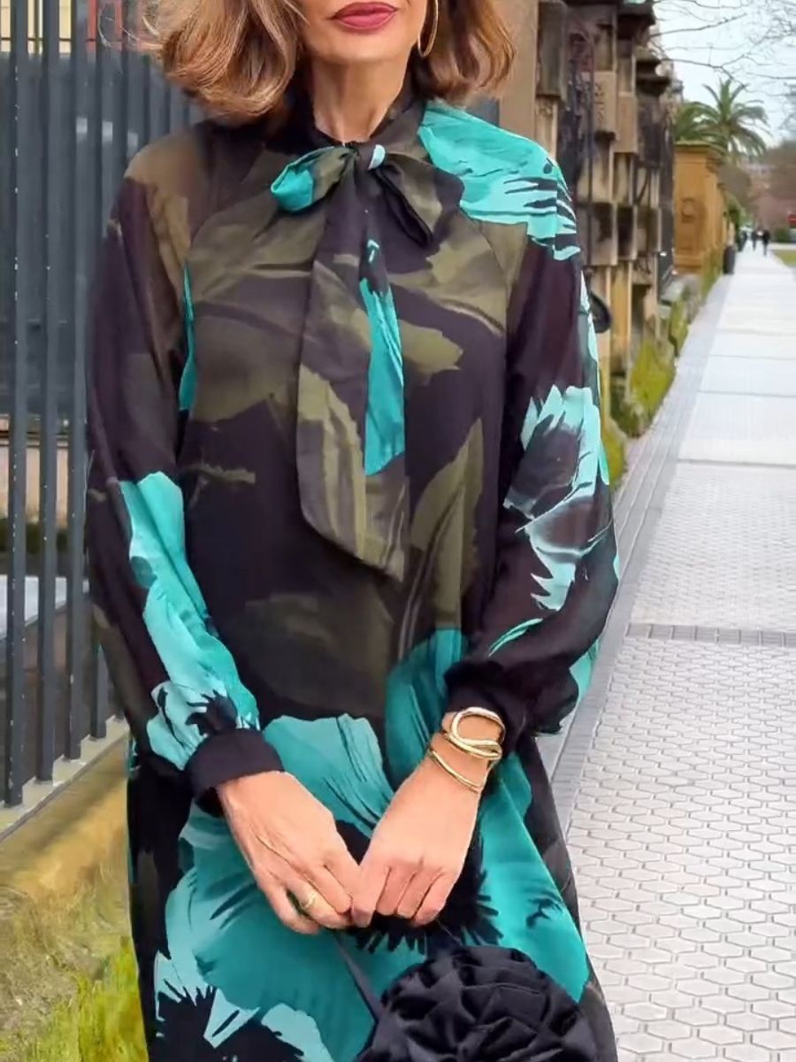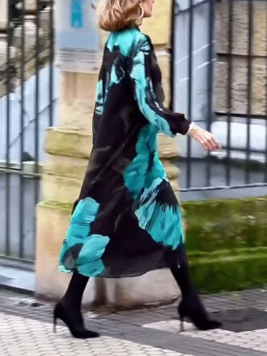 - This printed midi dress with a high neck design and oversized silhouette will provide the unique and elegant touch you need at your events.