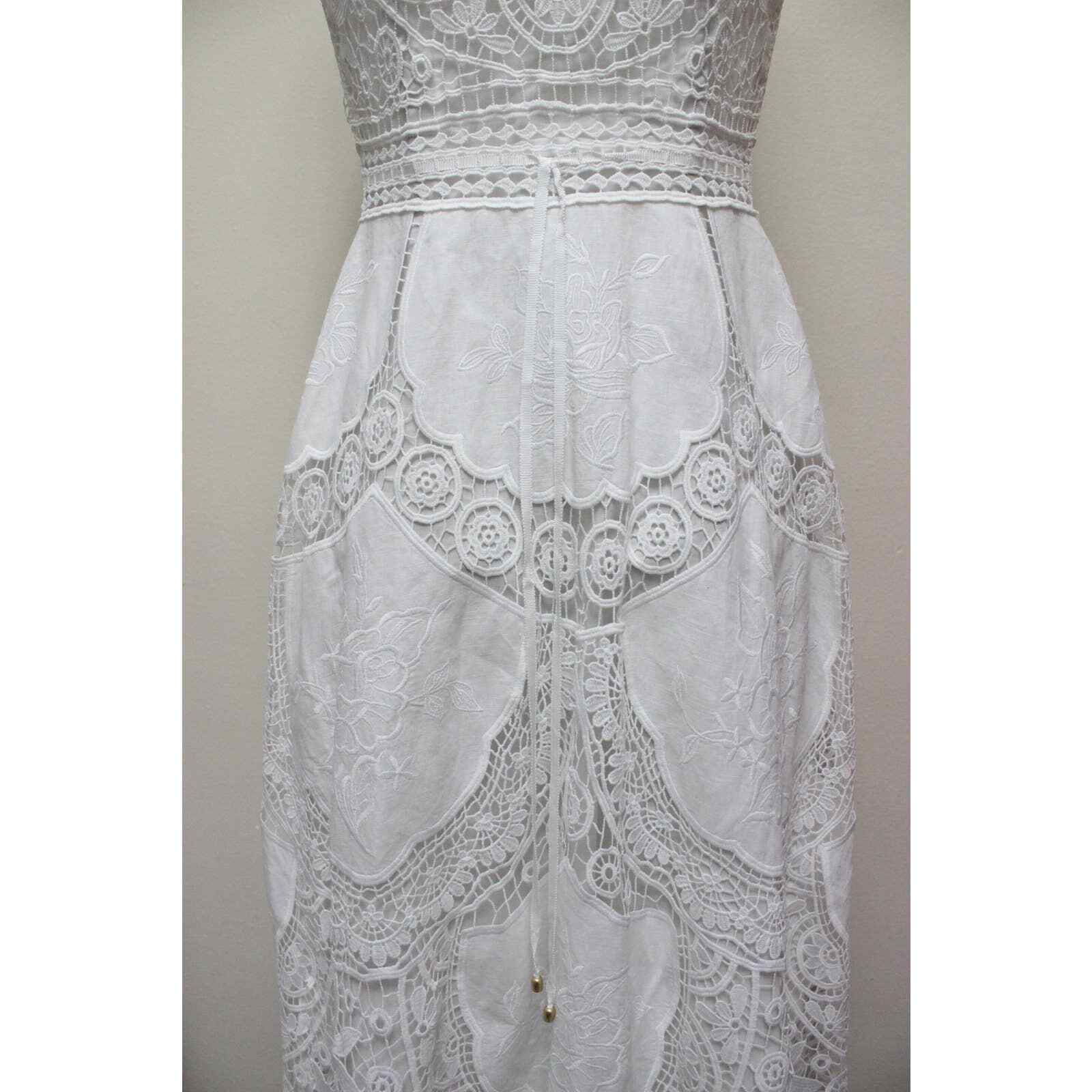 White Bonita Crochet Lace Embroidered Halter Midi Dress